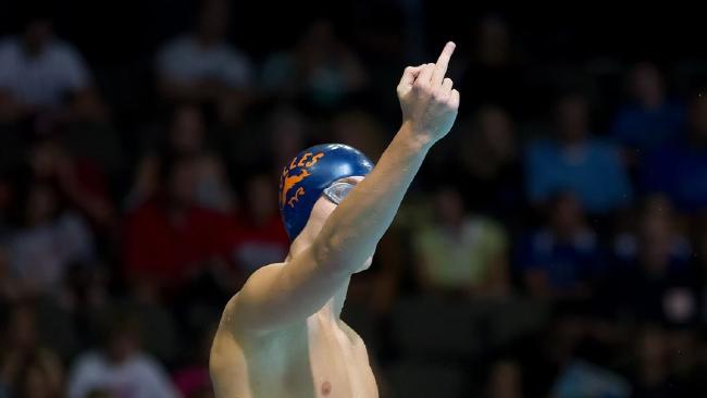 Канадский пловец показывает отцу средний палец перед каждым заплывом