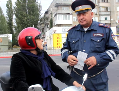 Так, сотрудник ГАИ остановил пожилую женщину на скутере и обратился к ней со словами: «У нас сегодня операция проходит - «Шлем всему голова».