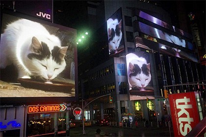 Лакающий молоко кот оккупировал экраны Таймс-сквер