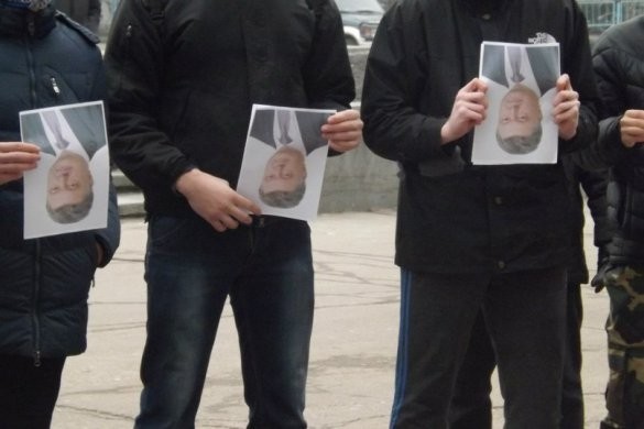 На акції "Я - Волноваха" в Житомирі учасники порвали портрети Порошенка