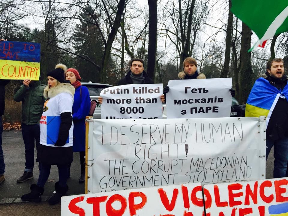 "Приїхали в Страсбург підтримати українську діаспору, яка вимагає від ПАРЄ вигнати російську делегацію і звільнити Савченко. Порвали ганчірку ДНР, яку принесла якась божевільна, яку ми теж вигнали. Перед входом в приміщення ПАРЄ разом з Артемом Вітко облив морду російського комуняки Зюганова кров'ю і дав по його ворожій пиці! Слава Україні!",- написав Дмитро