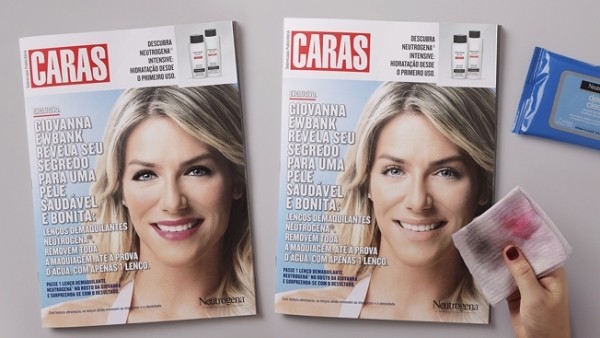 Представители бренда Neutrogena и агентство DM9DDB совместно с бразильскими еженедельником Caras создали специальную обложку при участии актрисы Джованны Эубанк. К выпуску журнала прилагался пробник салфеток для глубокого очищения, которыми читатели могли удалить макияж с лица кинозвезды, пишет Аdindex.ru