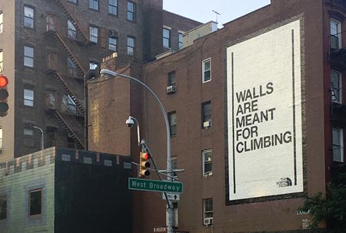 Компания, специализирующаяся на производстве спортивной, в частности, горной одежды и туристического инвентаря, пожертвовала некоммерческой организации The Trust for Public Land $1 млн для того, чтобы в американских городах появились стены для лазания. Помимо этого, наружная реклама со слоганом кампании установлена на зданиях в Нью-Йорке и Лондоне.