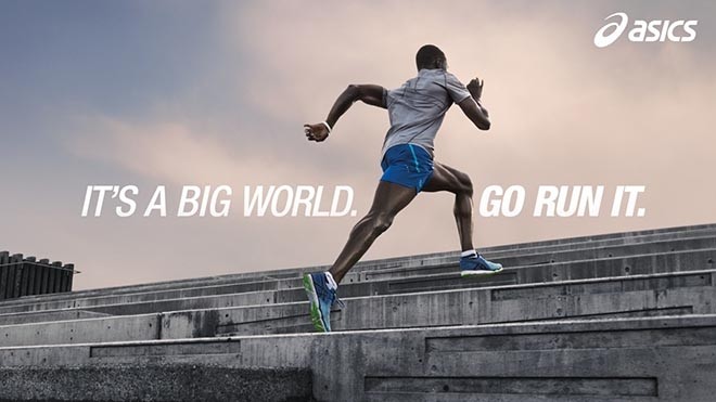 Спортивный бренд ASICS запустил глобальную рекламную кампанию "It"s a big world. Go run it." Кампания призвана вдохновить любителей спорта и фитнеса со всего мира исследовать новые территории и открыть для себя огромное количество способов и причин бегать. Кампания включает рекламу в outdoor, печати, в онлайне и активации в марафонах,передает mmr.ua