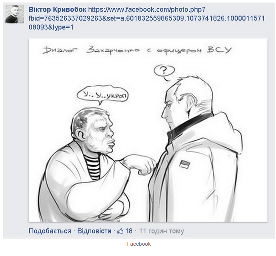 Пользователи социальных сетей отреагировали на хамское поведение Захарченко едкой иронией. Особо популярным стал скриншот видео, на котором Захарченко изображен в нелицеприяном виде, с подписью Обезьяна и Офицер армии Украины.