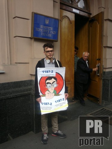 Колишній голова Студентської колегії Могилянки Єгор Стадний пікетував Верховну Раду України. Своєю акцією він намагався переконати депутатів якнайшвидше ухвалити новий Закон "Про вищу освіту".