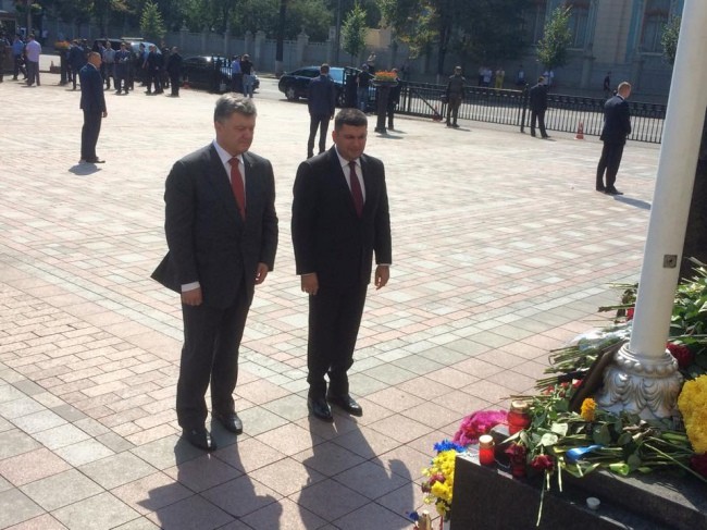 Разом із Порошенком був спікер парламенту Володимир Гройсман. Після цього Порошенко увійшов у будівлю Верховної Ради.