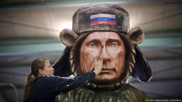 В "бешеный понедельник" насмехались и над президентом России Владимиром Путиным. В Кельне российского президента изобразили в виде робота-танка, проезжающего по Чечне, Молдавии, Грузии и Украине.