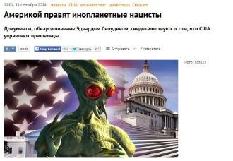 Згідно з повідомленням, факт присутності інопланетян-нацистів підтверджують документи колишнього працівника американських спецслужб Едварда Сноудена. Прибульці нібито захопили владу у США відразу після Другої світової війни,пише Телекритика