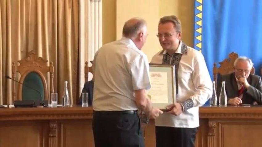"В Садового остаточно з'їхали з глузду. Нагородили подякою міського голови чільного львівського ватніка", - так прокоментував цю подію у себе на фейсбук-сторінці народний депутат України VI скликання Юрій Михальчишин.