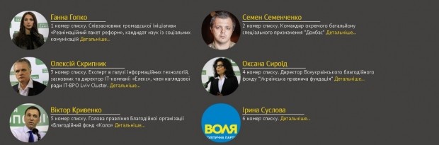Также делегаты утвердили список кандидатов в депутаты от партии в мажоритарных округах. Согласно решению съезда, первым номером в избирательном списке партии числится соучредитель общественной инициативы “Реанимационный пакет реформ” Анна Гопко, вторым – Семенченко, третьим - эксперт в области информационных технологий, учредитель и директор ІТ-компании “Элекс” Алексей Скрипник, четвертым - директор Всеукраинского благотворительного фонда “Украинская правовая фундация” Оксана Сыроид. Пятым номером в списке - председатель правления благотворительной организации “Благотворительный фонд “Круг” Виктор Кривенко.