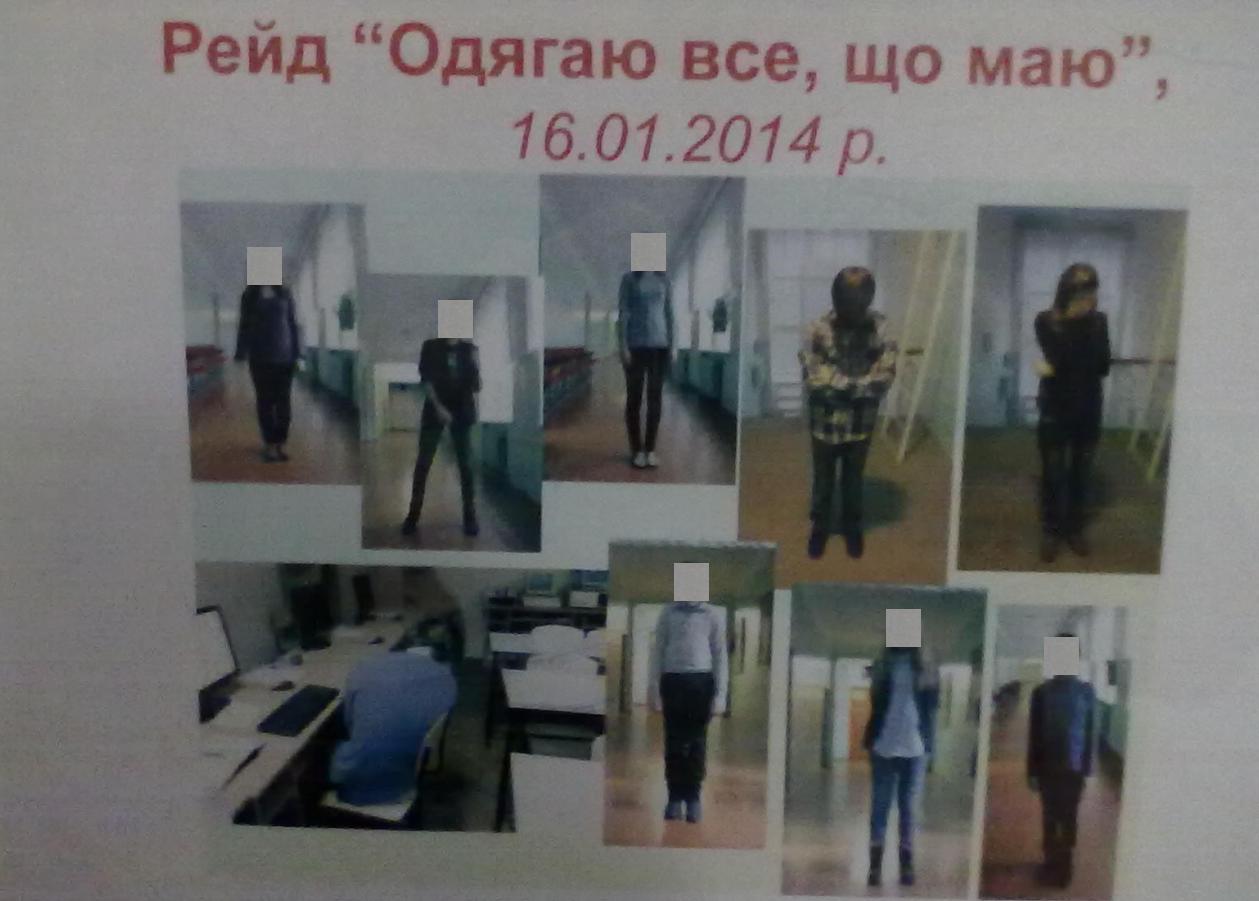 Коли “порушники” приходять до школи – їхні прізвища записують. А далі за дорученням завуча з виховної роботи – Галини Льовіної – старшокласники, які відвідують фотостудію й повинні відловлювати та фотографувати дітей.