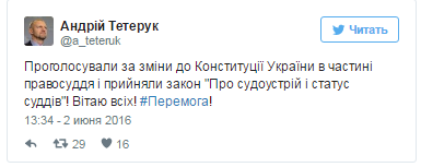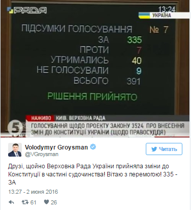Верховная Рада затвердевшая изменения в Конституцию в части правосудия конституционным большинством.