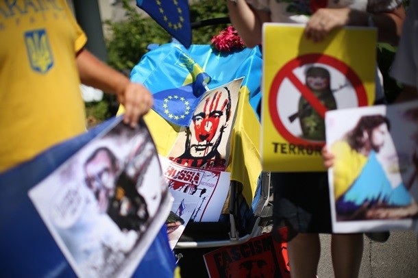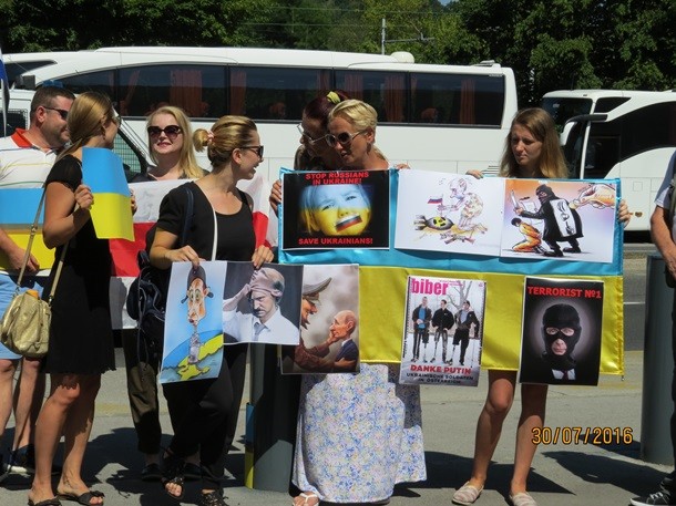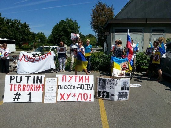 Українська діаспора зустріла президента Росії Володимира Путіна, котрий прибув до Словенії, акцією протесту. Активісти зібралися під російським посольством у Любліні 30 липня, повідомляє посольство України в республіці Словенія.
