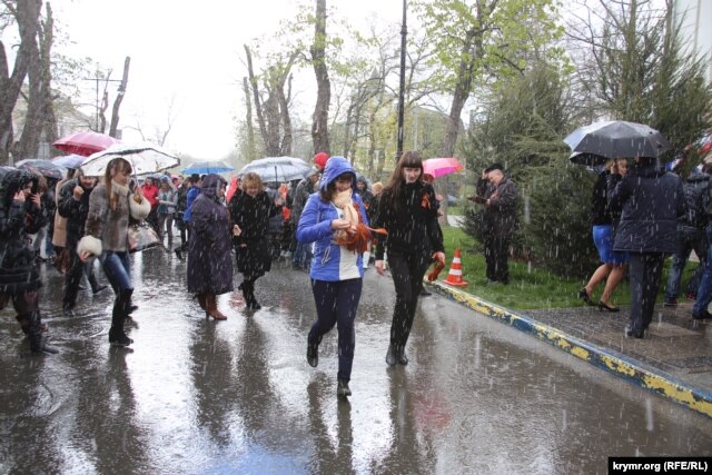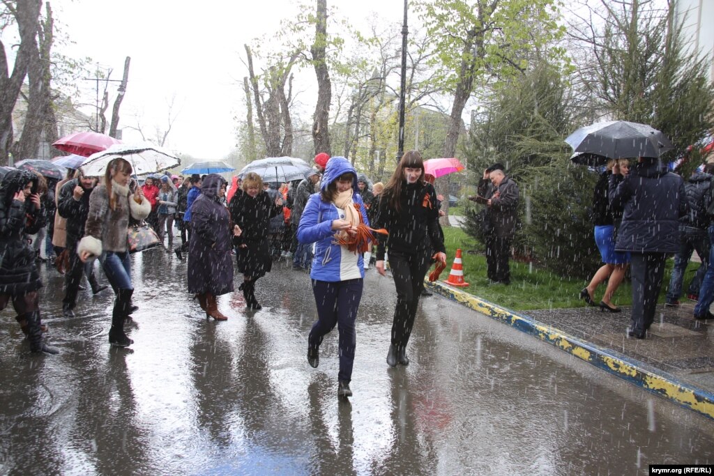 У Криму під дощем зі снігом роздавали і розтягували георгіївську стрічку