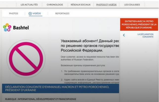 У Росії блокували доступ до відео зустрічі президентів України Петра Порошенка та Франції Еммануеля Макрона на сайті Єлисейського палацу.