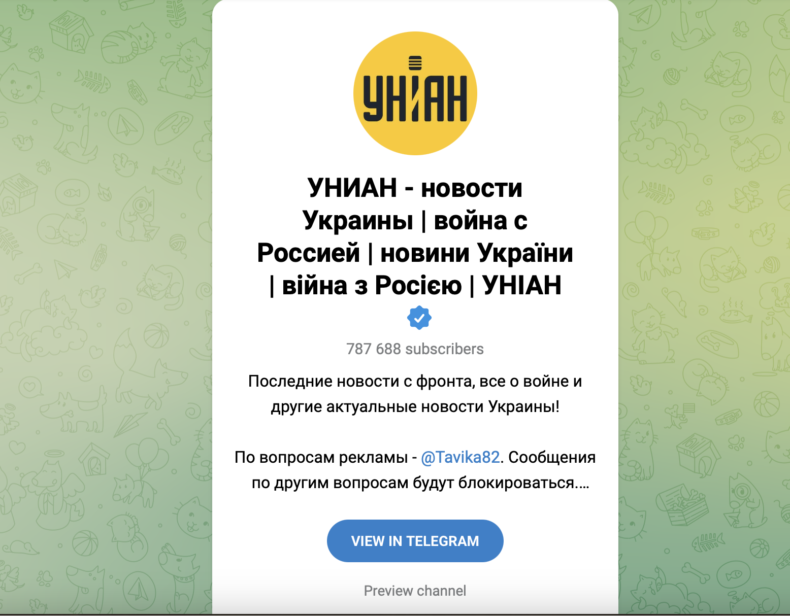 Українське інформаційне агентство УНІАН веде Telegram-канал виключно російською мовою