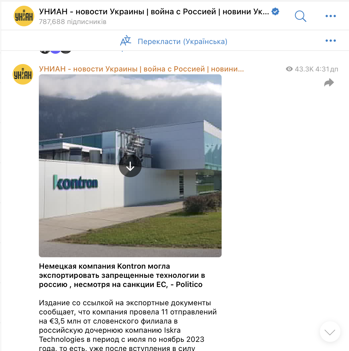 Одне з найбільших українських інформаційних агентств — УНІАН — веде свій офіційний Telegram-канал виключно російською мовою. Це викликає дедалі більше запитань серед українських користувачів, особливо в умовах війни, яку Росія веде проти України.