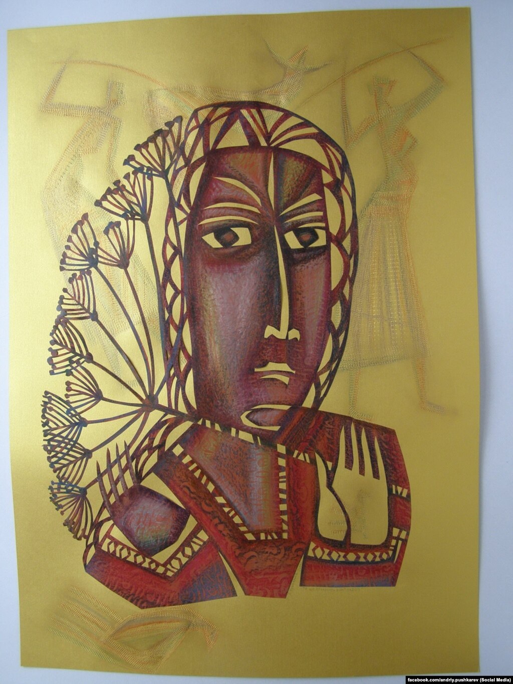 «Кріп («укроп») – це сучасний і дуже могутній символ, який я не випадково заклав в основу циклу своїх робіт під назвою «Ліки свого народу». Всього в цикл входить 5 робіт, які виконані на дуже незвичному золотому картоні. Я використовував іконописні кольори – червоний, зелений, пурпуровий. До створення цих робіт мене спонукали останні трагічні події в державі», – розповів автор.