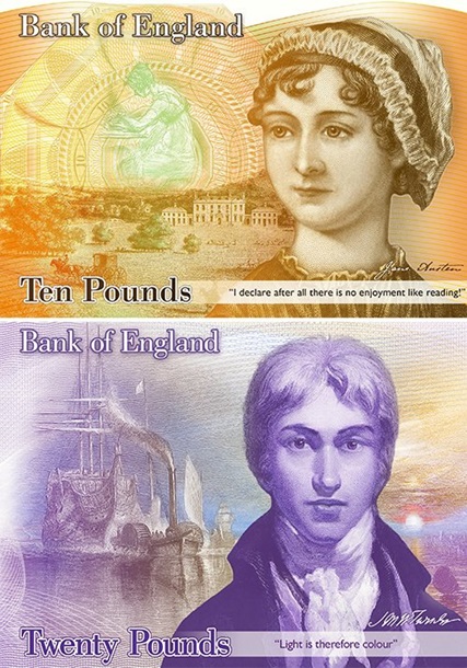 Через рік в Англії планують випустити банкноту в 10 фунтів із зображенням письменниці Джейн Остин, а до 2020 року - у 20 фунтів з портретом живописця Вільяма Тернера.