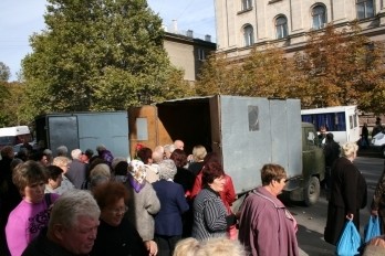 «Одаренные» пенсионеры не очень хотели показывать, что именно было в пакетах, но удалось разглядеть, что по 1 килограму сахара, макаронных изделий, гречки и риса. Также к продуктовому набору прилагалась рекламная продукция кандидата.