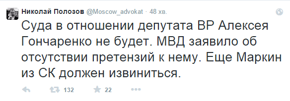 Суду щодо нардепа Олексія Гончаренка в Росії не будет.