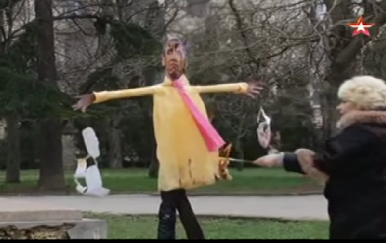 Севастопольские пенсионеры в одном из городских скверов провели необычную акцию - сожгли чучело Барака Обамы