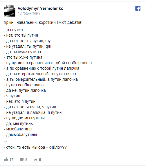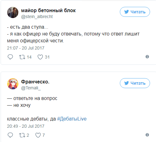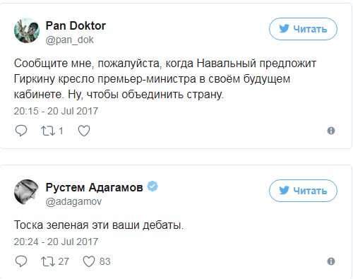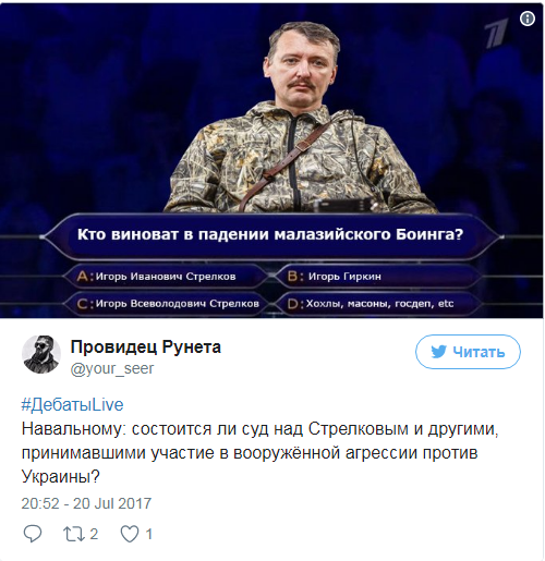 "Відповідати не буду, тому що офіцер": як соцмережі відреагували на дебати Навального з Гіркіним