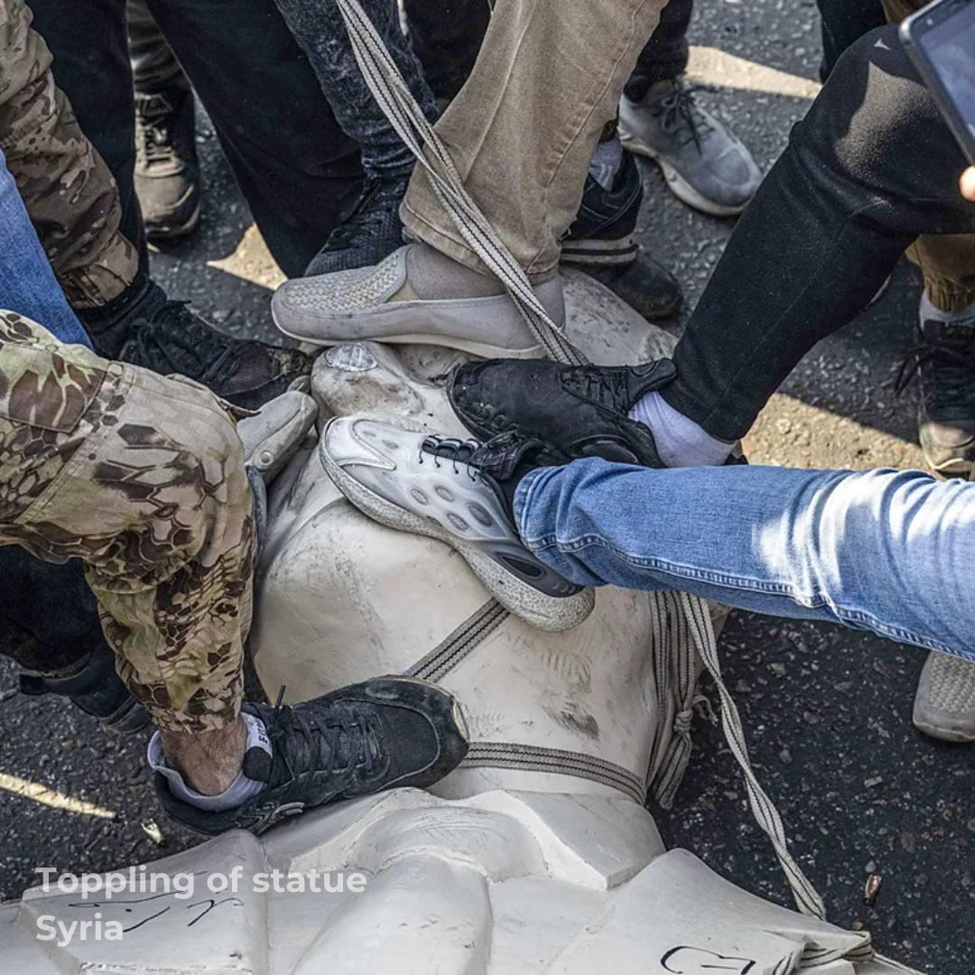 • Звалення статуї в Сирії, де громадяни топчуть голову пам'ятника Хафезу аль-Асаду.