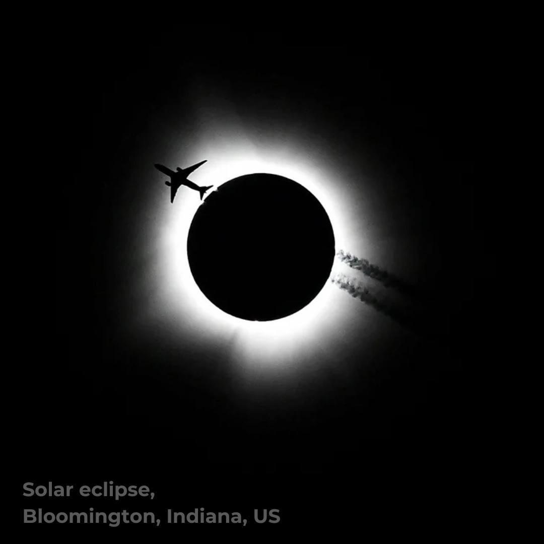 • Сонячне затемнення в Блумінгтоні, де літак перетинає його контрасти з короною.