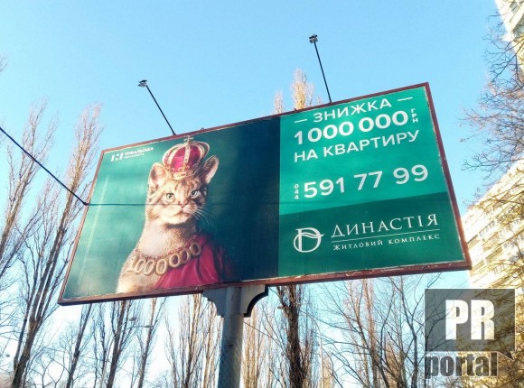 Креативщики ЖК "Династія", схоже, прислухалися до зауважень PRпорталу щодо дивної реклами з двоголовою кішкою і внесли змінили. Втім, примітивізм залишився.