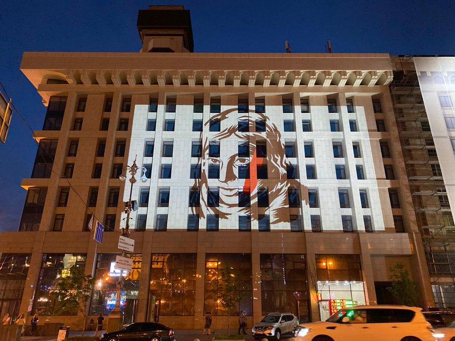До дня народження Катерини Гандзюк портрет активістки спроектували на київський Дім профспілок