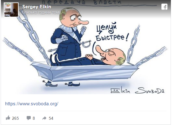 Так, на картинке изображен процесс, как Путин сам себе передает власть.