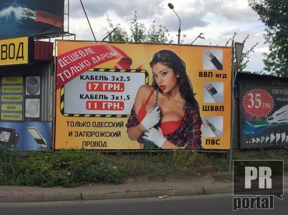Дівчина з банера на Окружній дорозі, що в Києві, переконує "дешевло только даром".