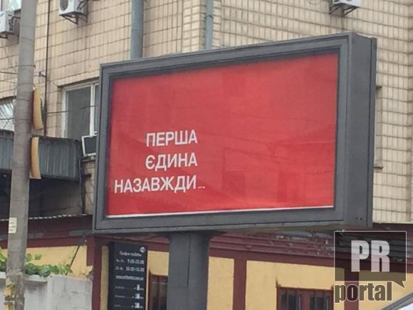 У Києві з'явилася загадкова реклама. На червоному тлі написано три слова: "Перша. Єдина. Назавжди".