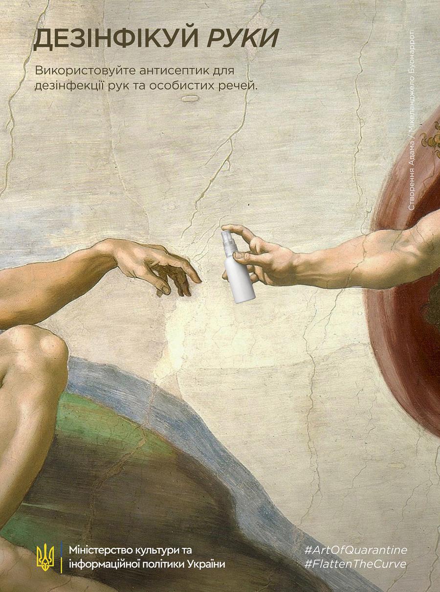 Класичні образи зі світу мистецтва постають в новому виді і розкажуть як можна протистояти розповсюдженню вірусу COVID-19 і залишатися в безпеці.