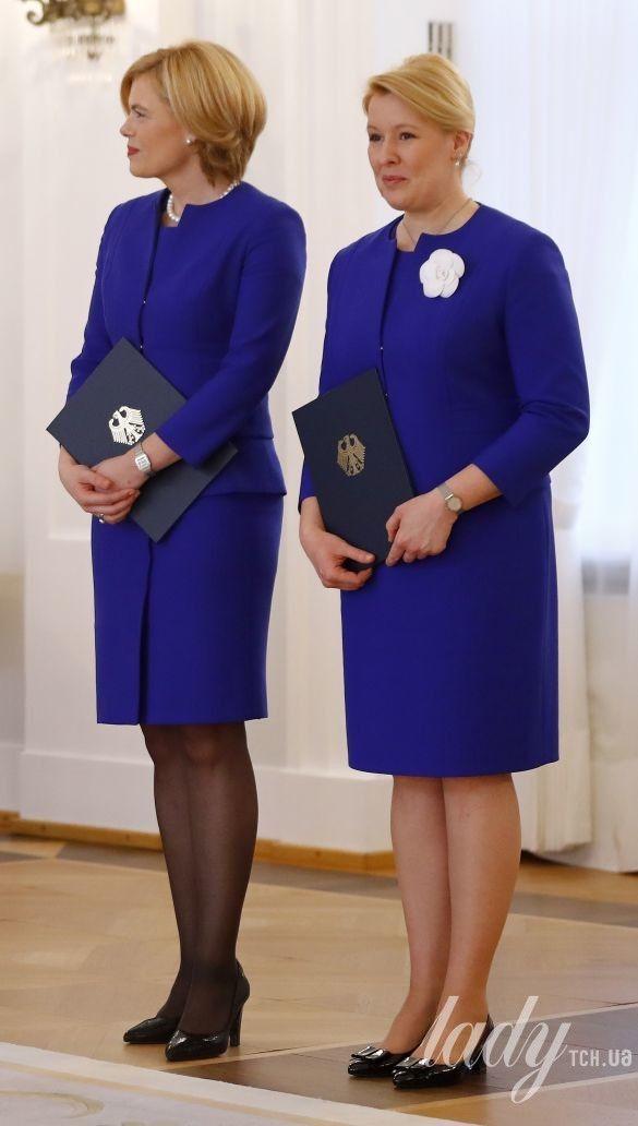 Не обошлось на церемонии и без конфузов. 45-летний министр сельского хозяйства Юлия Клекнер и 39-летний министр по делам семьи, пожилых людей, женщин и молодежи Франциска Гиффай пришли в одинаковых нарядах – в синих платьях, поверх которых надели жакеты.