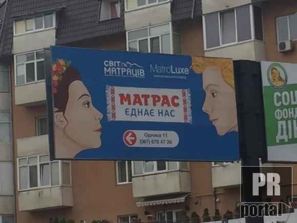 Слоган на борді "Матрас єднає нас" виглядав як початок реклами соціальної ініціативи соратники Ігоря Коломойського, народного депутата, співвласника курорту "Буковель" Олександра Шевченка.