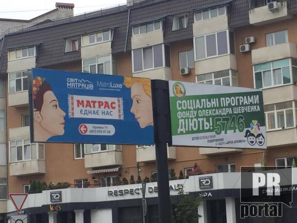 Вийшов жартівливий слоагн "Матрас єднає нас - соціальна програма Фонду Олександра Шевченка діє". На думку редакції, співробітникам Фонду варто уважніше підходити до вибору рекламних нплощин