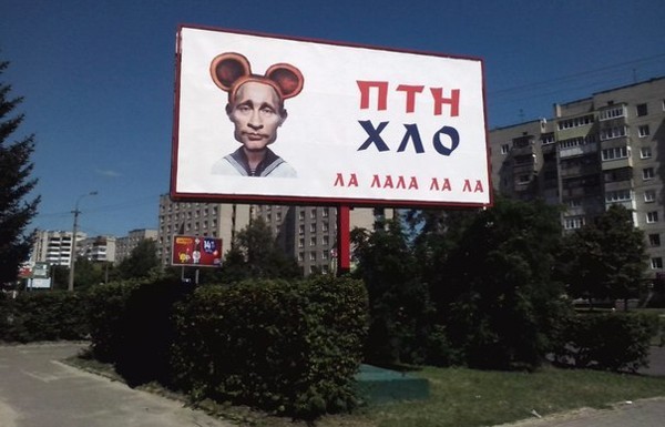 На одном из центральных проспектов Луцка красуется билборд с надписью «ПТН ХЛО» и изображением президента России Владимир Путина с большими, как у Чебурашки, ушами.