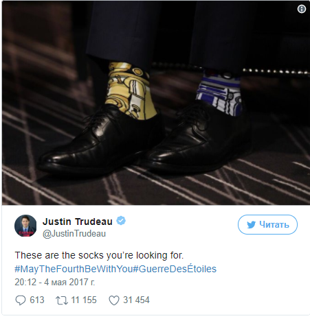 На экономическом форуме Трюдо похвастался носками с Чубаккой