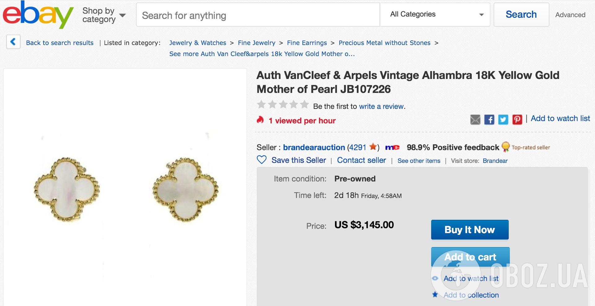 Примечательно, что такие же серьги на всемирно известном сайте eBay, правда, ношеные и в желтом золоте, можно купить всего за $3145.