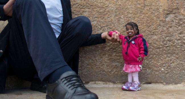 Джоти, напротив, является самой маленькой женщиной в мире, и ее рост составляет всего 62,8 сантиметров. Рекордсмены приехали в Египет по приглашению Министерства туризма, специально, чтобы принять участие в фотосессии.