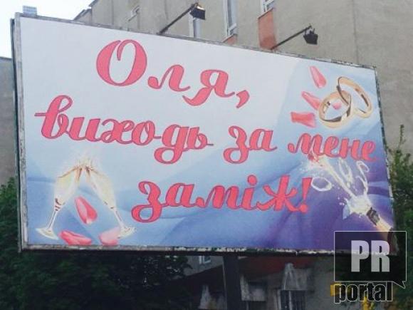"Оля, виїодь за мене заміж". Борд з таким закликом висить у центрі містечка Кременець, що на Тернопільщині