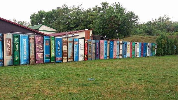 Неподалеку от Киева, рядом с АЗС в районе села Саливановка, появился необычный литературный забор. Его украсили корешками от книг, нарисовав их на металлопрофиле краской из баллончиков.