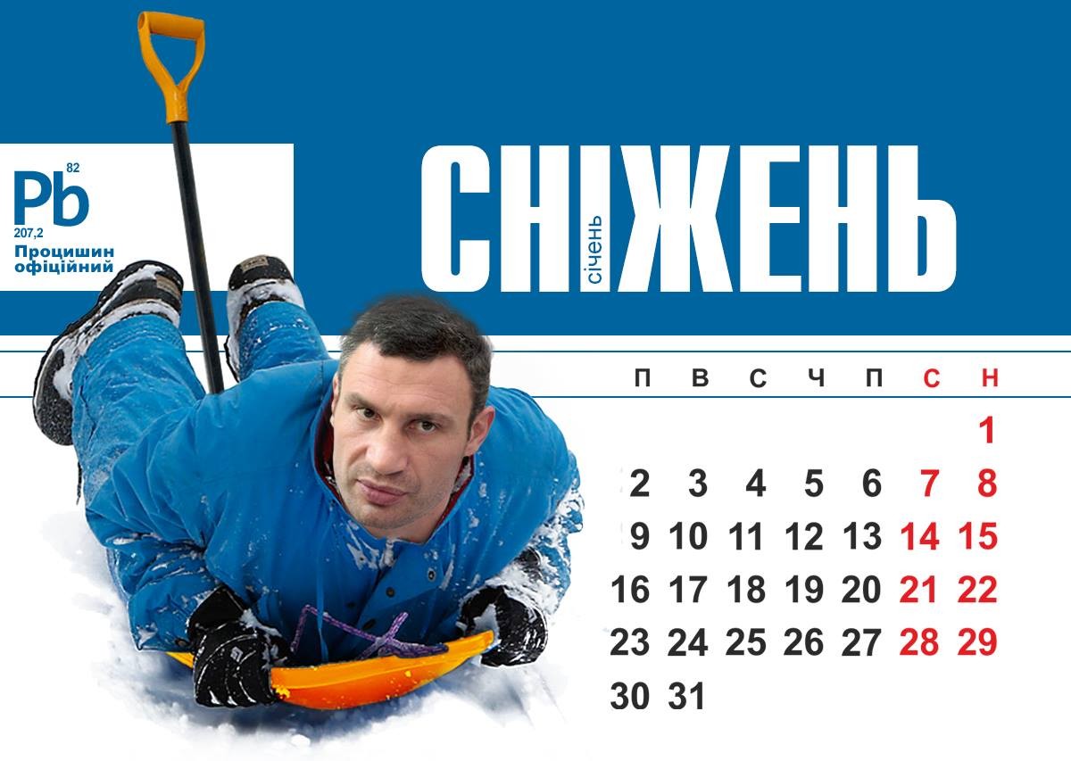 Наприклад, січень став "сніженем" та проілюстрований столичним мером Віталієм Кличком на лопаті.