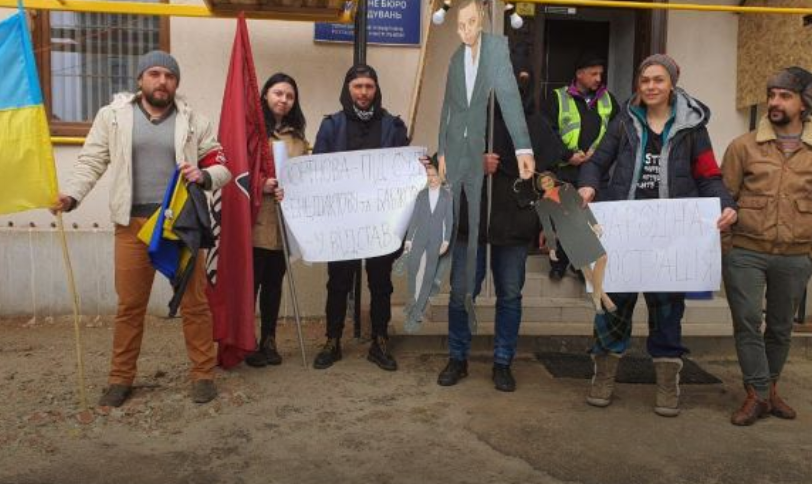 Демсокира разом з "Рухом опору капiтуляцiї", "Суспільством майбутнього" та "Молодіжним націоналістичним конгресом" принесли під ДБР у Львові "опудало Андрія Портнова.