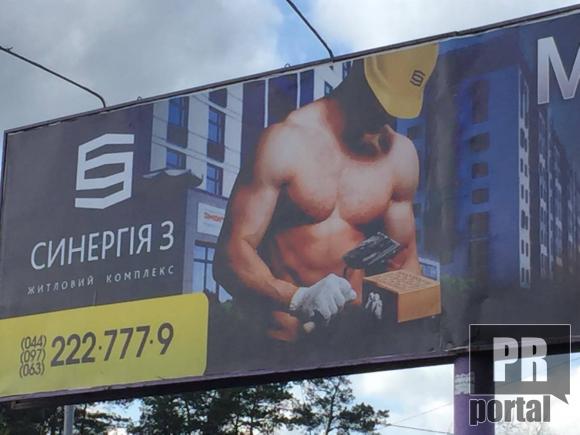 У рекламщиків житлового комплексу "Синергія-3" креатив в дефіциті. PRпортал спостерігав, розвиток креативної думки рекламщиків цієї будівельної компанії: спочатку креативщики запропонували "обрати будь-яку" одну із трьох жінок на фото, потім пишногруда блондинка "чекала сусіда", а потім рекламщики змінили стиль і маленьку квартиру прорекламували нульовим розміром жіночих грудей. Останнє що було - це самостійна дівчина, котра настільки незалежна, що сама купила квартиру в ЖК "Синергія" і вирішила сказкати "Вова, давай досвіданія!"