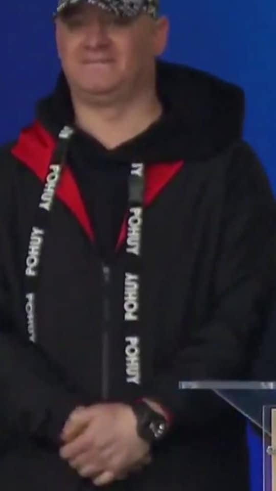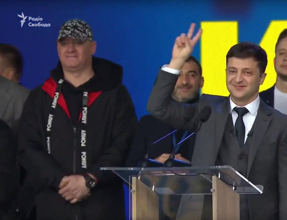 Близький соратник по "Кварталу 95" Євген Кошовий прийшов на Олімпійський підтримати друга у досить дивному вбранні. На світшоті Євгена написані матюки