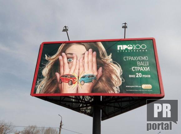 Страхова компанія "Про100" використала у своїй рекламі боді-арт. Вони зобразили ДТП у формі намальованих на руках автомоблів. Цими розмальованими руками дівчина прикриває обличчя.